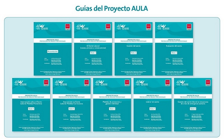El Colegio Oficial de la Psicología de Madrid, a través de la Sección de Psicología del Trabajo, Organizaciones y Recursos Humanos, junto al Instituto Regional de Seguridad y Salud en el Trabajo (IRSST) de la Consejería de Economía, Empleo y Competitividad de la Comunidad de Madrid, han elaborado el programa denominado Proyecto AULA: Prevención de riesgos psicosociales. Este proyecto ha sido dirigido por los Vocales de la Junta de la Junta de Gobierno del Colegio, Luis Picazo e Isabel Aranda, y por Jorge López de Ávila, miembro del Instituto Regional de Seguridad y Salud en el Trabajo, y ha sido coordinado por las psicólogas Elisa Sánchez y Helena Thomas. El programa Proyecto AULA: Prevención en riesgos psicosociales consta de ocho videos informativos con sus respectivas Guías, realizados por psicólogas y psicólogos colegiados expertos en salud laboral, centrándose en la prevención, la gestión y la intervención profesional ante situaciones del estrés laboral. Los altos costes personales y sociales generados por el estrés, y especialmente por el estrés laboral, han dado lugar a que organizaciones internacionales como la UE, la OMS y la OIT insistan cada vez más en la importancia que tienen la prevención y el control del estrés en este ámbito. | |||