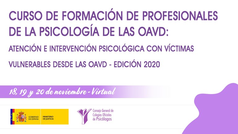 Los días 18, 19 y 20 de noviembre de 2020 han sido los elegidos para la celebración del curso de formación de profesionales de la Psicología de las Oficinas de Asistencia a las Víctimas del Delito (OAVD), que este año, debido al contexto de pandemia, se ha realizado a través de la plataforma on-line del Consejo General de la Psicología (COP). Las jornadas están enmarcadas dentro del Convenio de Colaboración del COP y el Ministerio de Justicia, establecido para la prestación asistencia psicológica y apoyo a las víctimas en las oficinas de asistencia a víctimas dependientes del Ministerio de Justicia y en la oficina de información y asistencia a las víctimas del terrorismo de la Audiencia Nacional. Como viene siendo habitual, las jornadas han sido coordinadas por María José Catalán, vocal de la Junta de Gobierno del Consejo General de la Psicología, y Mario García Martínez, jefe de Servicio de la Unidad de Asistencia a las Víctimas del Ministerio de Justicia, quienes se han encargado también de su inauguración, junto con Concepción López-Yuste Padial, directora general para el Servicio Público de Justicia. | |||