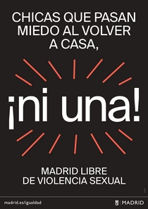 El Ayuntamiento de Madrid ha puesto en marcha la campaña «¡NI UNA! Madrid libre de violencia sexual» con la finalidad de concienciar a la población en contra de la violencia sexual, en todas sus manifestaciones y contextos: espacios públicos, privados y violencia a través de los medios digitales.