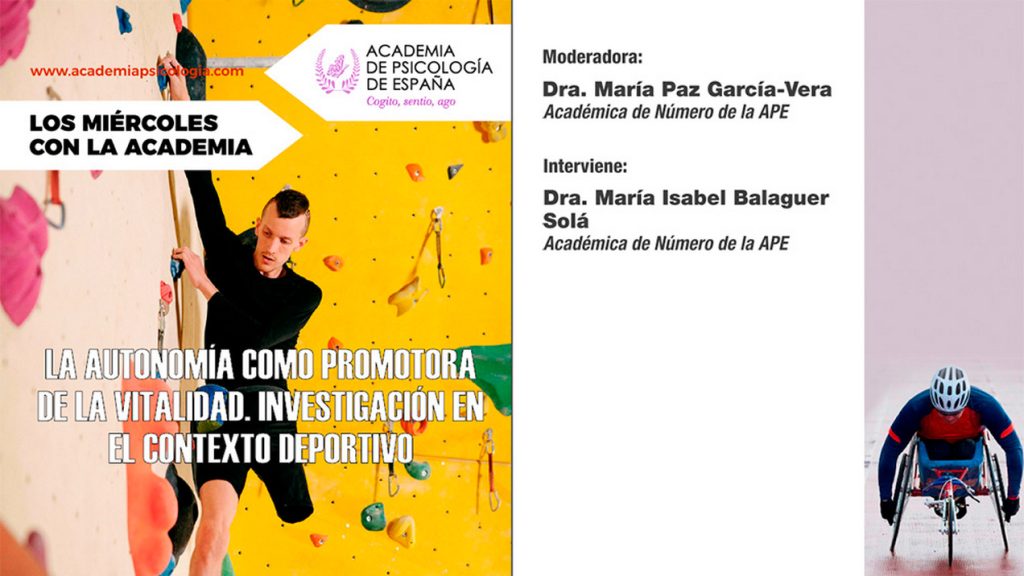 La Academia de Psicología de España tiene el honor de invitar a todos los interesados al seminario online «La autonomía como promotora de la vitalidad. Investigación en el contexto deportivo». Este acto se enmarca dentro del ciclo de conferencias «Los Miércoles con la Academia», una serie que busca generar espacios de reflexión y debate sobre temas de gran relevancia en el ámbito de la Psicología.