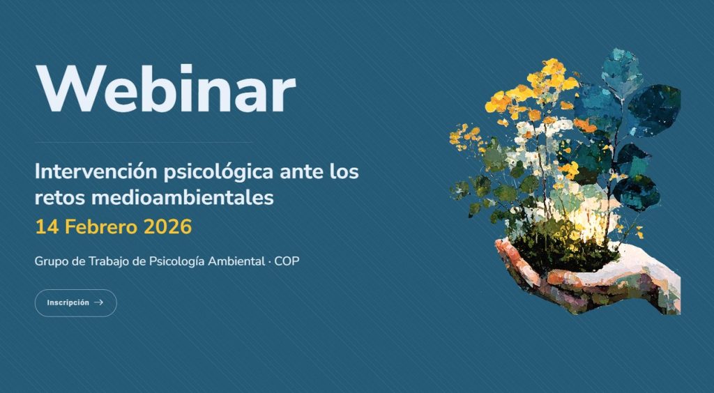 El próximo sábado, 14 de febrero, tendrá lugar el webinar «Intervención Psicológica ante los Retos Medioambientales», un encuentro organizado por el Grupo de Trabajo de Psicología Ambiental, del Consejo General de la Psicología de España, con el objetivo de difundir las distintas áreas de intervención y desempeño profesional de la psicología ambiental, dar a conocer las diferentes estrategias disponibles en este campo de intervención psicológica para enfrentar los actuales retos medioambientales y promover el encuentro y relación entre colegiados/as para actualizar e intercambiar posibles conocimientos y competencias profesionales.