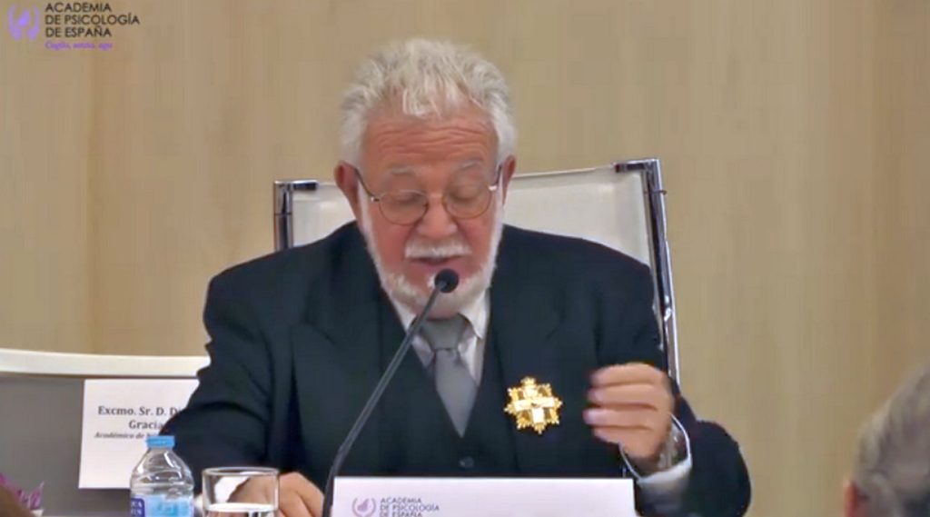 Durante el acto, el académico electo dio lectura a su discurso de ingreso preceptivo, que fue contestado en nombre de la corporación por María Vicenta Mestre Escrivá, Académica de Número de la Academia de Psicología. A su término, el presidente de la APE,  Heliodoro Carpintero Capell, le hizo entrega de su medalla y distintivos de su cargo.