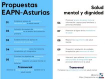 El grupo de participación de la Red Europea de Lucha contra la Pobreza y la Exclusión Social (EAPN) en Asturias, ha publicado el documento Salud Mental y dignidad, con el objetivo de garantizar una promoción de la salud mental entre la población, con una perspectiva inclusiva e integral, paliando las diferencias de gradiente de desigualdad en el estado de la salud mental y en el acceso a los recursos disponibles para lograr su promoción y cuidado. En el documento, en el que se alerta sobre el grave deterioro de la salud mental derivado de la actual situación, se establece un decálogo de propuestas para la promoción, prevención e intervención en salud mental desde la dignidad y la participación social, que contempla los siguientes aspectos: |