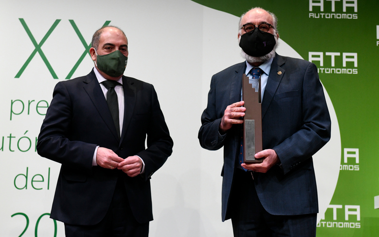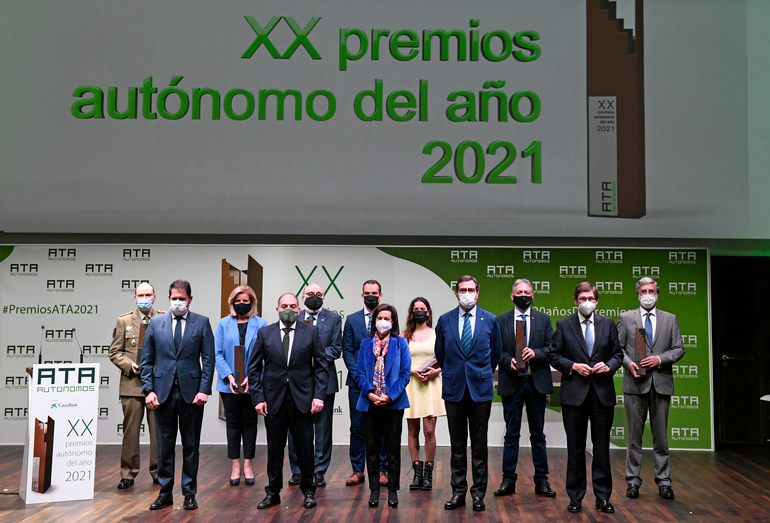 El Consejo General de la Psicología de España, como ya informamos hace unas semanas, ha recibido el Premio Asociacionismo 2021 concedido por la Federación Nacional de Asociaciones de Trabajadores Autónomos -ATA-, en la vigésima edición de sus premios Autónomo del Año. En una gala, celebrada el pasado 22 de noviembre, en el auditorio de Caixa Fórum, en Madrid, el presidente del COP, Francisco Santolaya, recogía este galardón que premia la labor que han ejercido los psicólogos y las psicólogas, especialmente, en un período tan difícil. Esta XX Edición de los Premios Autónomo del Año contó con la presencia de numerosas autoridades del mundo político y empresarial como la ministra de Defensa, Margarita Robles, el presidente de CEOE, Antonio Garamendi o José Ignacio Goirigolzarri, presidente de CaixaBank, que quisieron mostrar su apoyo al colectivo de autónomos en un momento tan complicado y tras 19 meses de pandemia. El presidente de la organización colegial acudió al acto acompañado de Manuel Berdullas, vocal y coordinador de Relaciones Internacionales del COP, y la decana del COP Navarra, Rosa Ramos, vicesecretaria del Consejo y representante del COP en la sectorial sanitaria de ATA. | |||