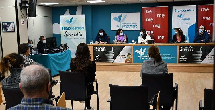 El pasado 17 de noviembre, con motivo de la conmemoración del Día Internacional del Superviviente del Suicidio, que se celebra el 20 de noviembre, el Colegio Oficial de la Psicología de Madrid fue la sede de la emisión en directo del programa de Radio Nacional de España (RNE) Por tres razones que dirige la periodista Mamen Asencio. El programa, que se tituló Prevención del Suicidio, contó con la presencia de supervivientes y sobrevivientes del Suicidio y Profesionales de la Psicología especializados. Durante el programa intervinieron representantes de los diferentes colectivos implicados en este tema. En primer lugar, la Vicedecana del Colegio Timanfaya Hernández, dio la bienvenida a la Directora del programa Mamen Asencio y a todo su equipo. Durante su intervención Timanfaya Hernández destacó la importancia de hablar del Suicidio, de cómo han aumentado los problemas de Salud Mental en la población y la necesidad de contar en la Sanidad Pública con más Profesionales de la Psicología para atender adecuadamente las necesidades de la ciudadanía. | |||