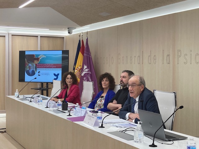 Posteriormente, tuvo lugar una mesa de trabajo sobre Buenas prácticas en evaluación psicológica, coordinada por José Muñiz Fernández, rector de la Universidad Nebrija y académico de Número de la Academia de Psicología de España, y que contó con la participación de Francisco José Abad García, profesor titular de la Universidad Autónoma de Madrid, Milagros Antón López, directora general de Hogrefe TEA Ediciones y Ana Mª Hernández Baeza, profesora titular de la Universidad de Valencia.